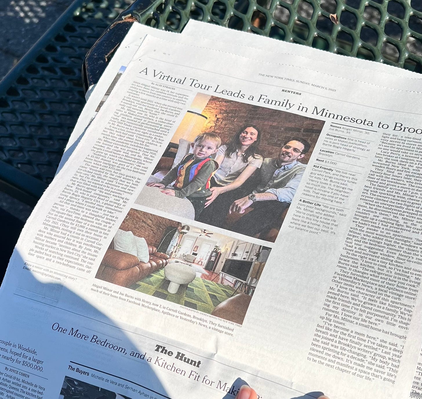 I’m from Minneapolis. Joe is from the Midlands. We met in London. We eloped in Gibraltar. We live in Brooklyn.