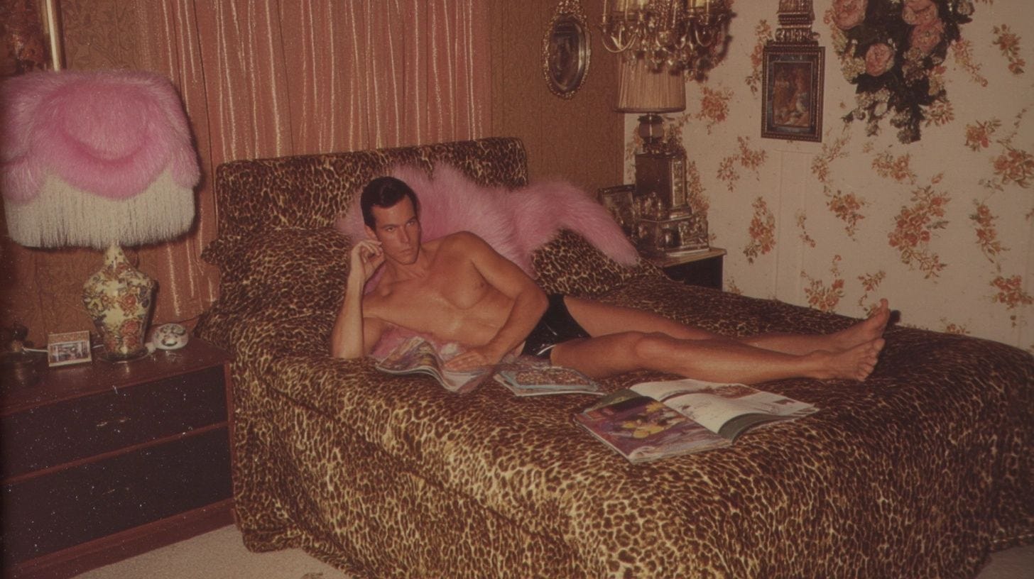 Something in me believed playboys wrapped their bedding in prints to present a wild, animalistic persona. And to hide stains through contrasting colors.