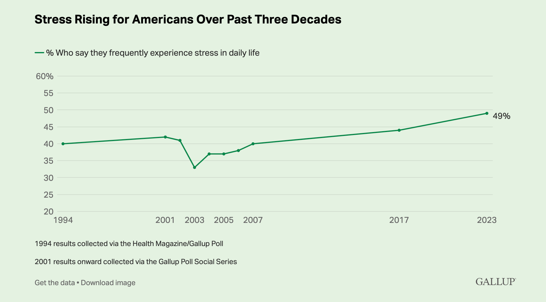 1) Stress levels, particularly among women and parents, are rising.