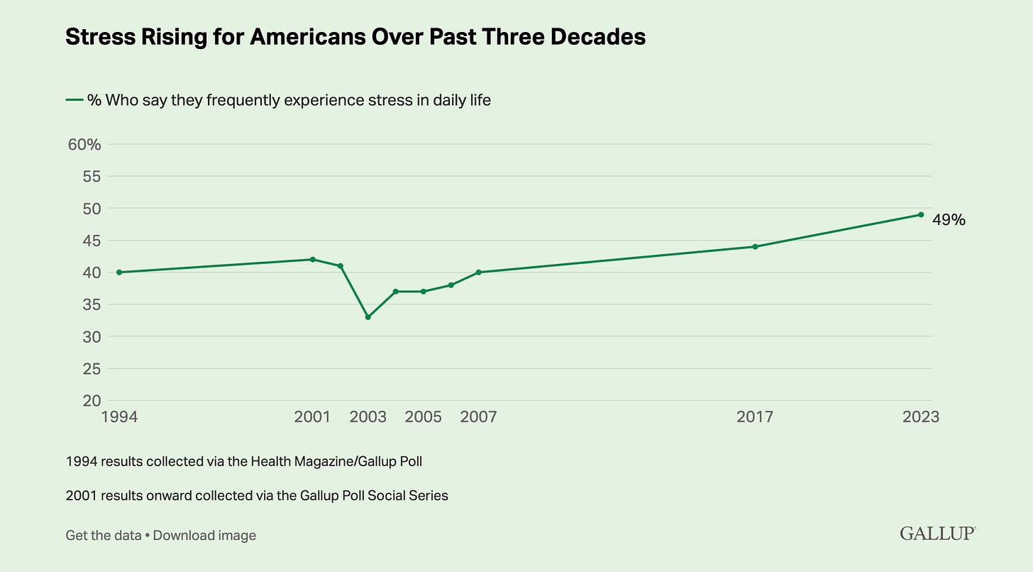 Americans are more stressed than ever before. In the 2024 ‘Stress in America’ report, one in three women rated their stress above 8 out of 10 — up from 24% in 2023, and just 19% in 2019. The trend line is sharp, and it’s climbing. The same report states that those taking the effects of stress the hardest are younger adults.